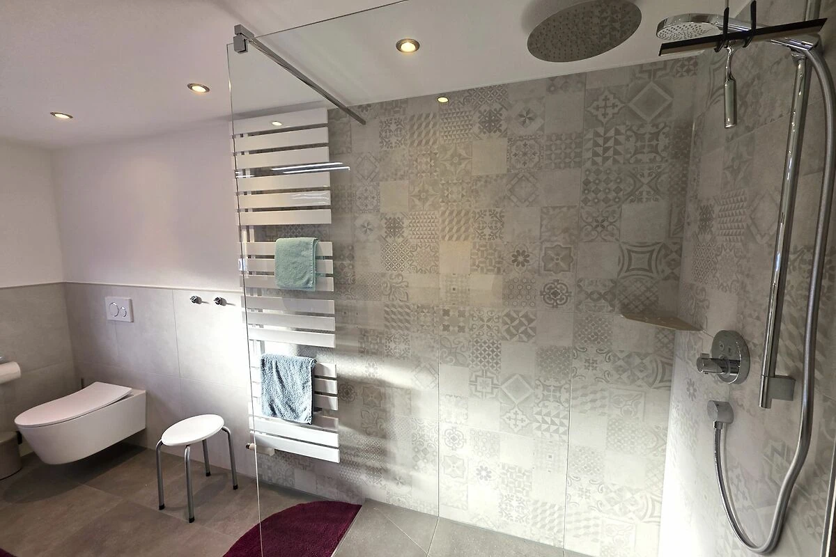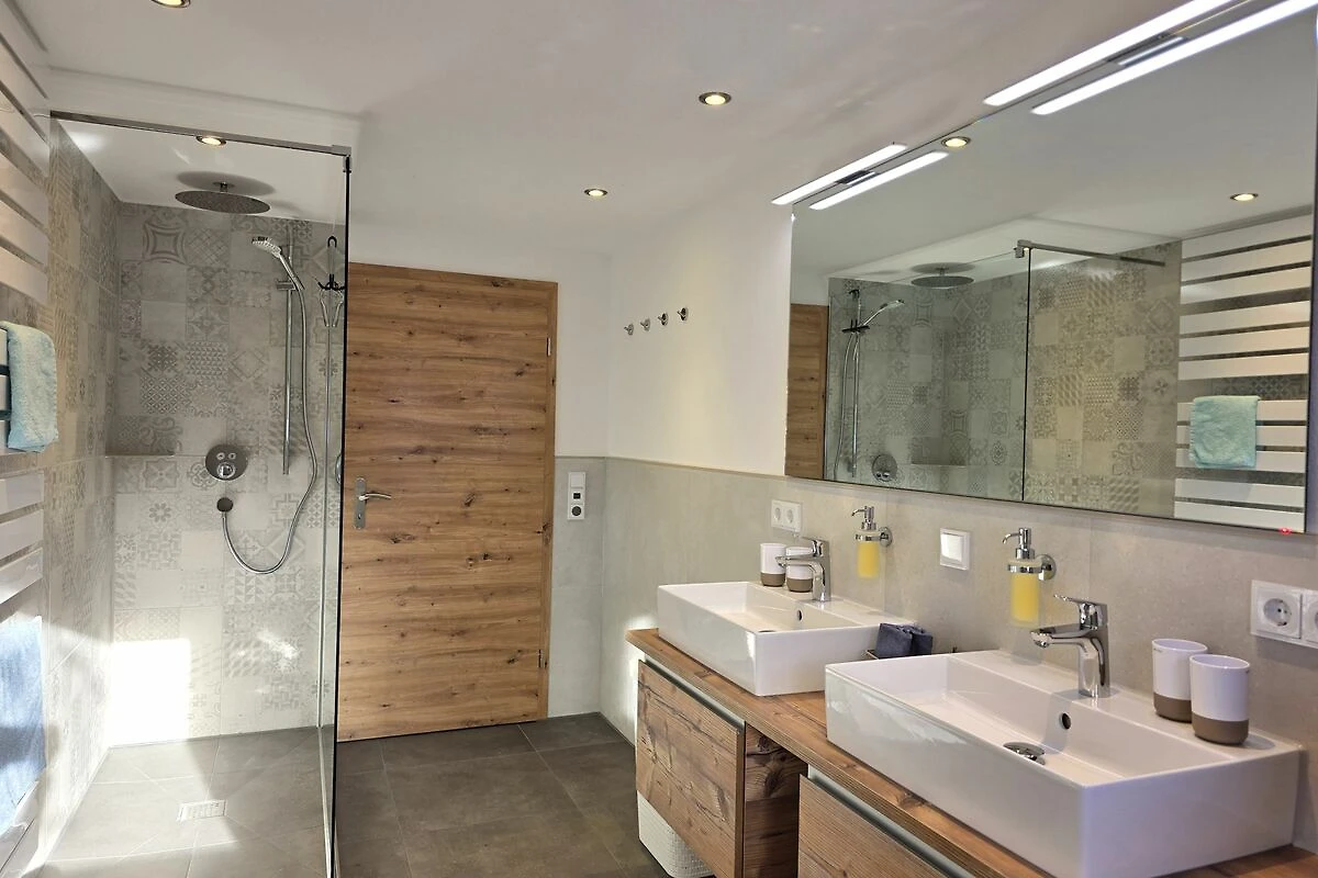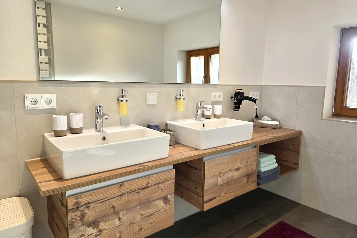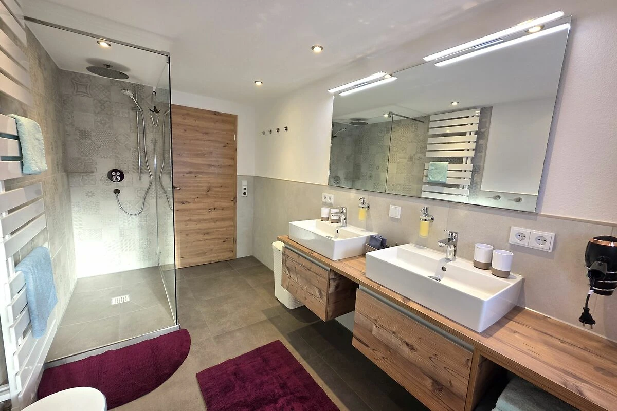De familieflat Ferientraum in het Landhaus Jörg op de 1e verdieping heeft 102m² met drie aparte slaapkamers, badkamer met bad en douche, evenals een apart toilet, een eetkeuken en een gezellige woonkamer met balkon op het zuiden. Fluwelen handdoeken liggen voor u klaar in de badkamer, de bedden zijn al opgemaakt en nodigen u uit om te dromen. Vooral het extra lange bed is ideaal voor grotere mensen die ontspanning zoeken. De flat is ontworpen voor maximaal zes personen