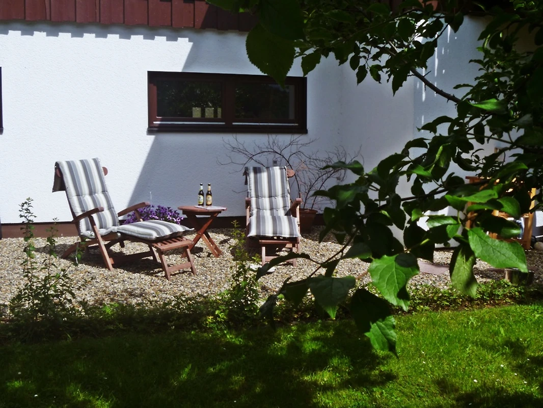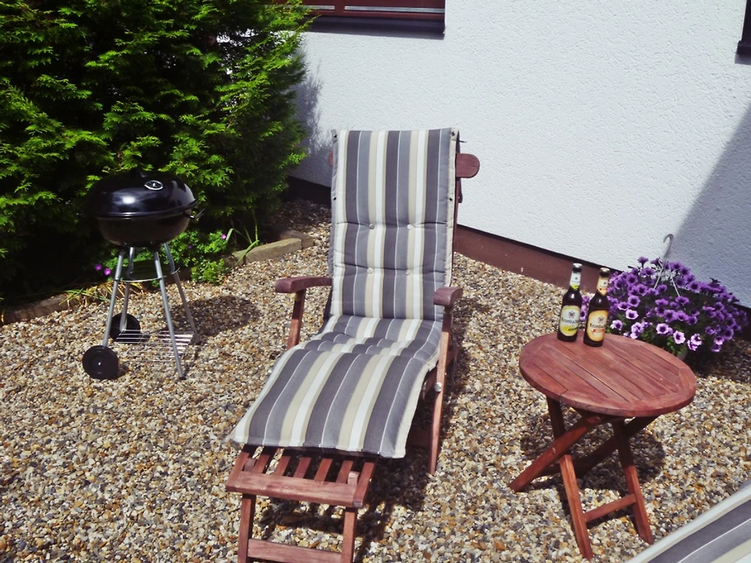Je kunt vertoeven op het houten terras, op een bed van grind of in de tuin. Het tuinmeubilair is deels gemaakt van teakhout en er is een ruime tafel met stoelen en 2 ligstoelen. Er is een banketpan aanwezig om gezellig buiten te koken, waarin je allerlei culinaire hoogstandjes tevoorschijn kunt toveren.