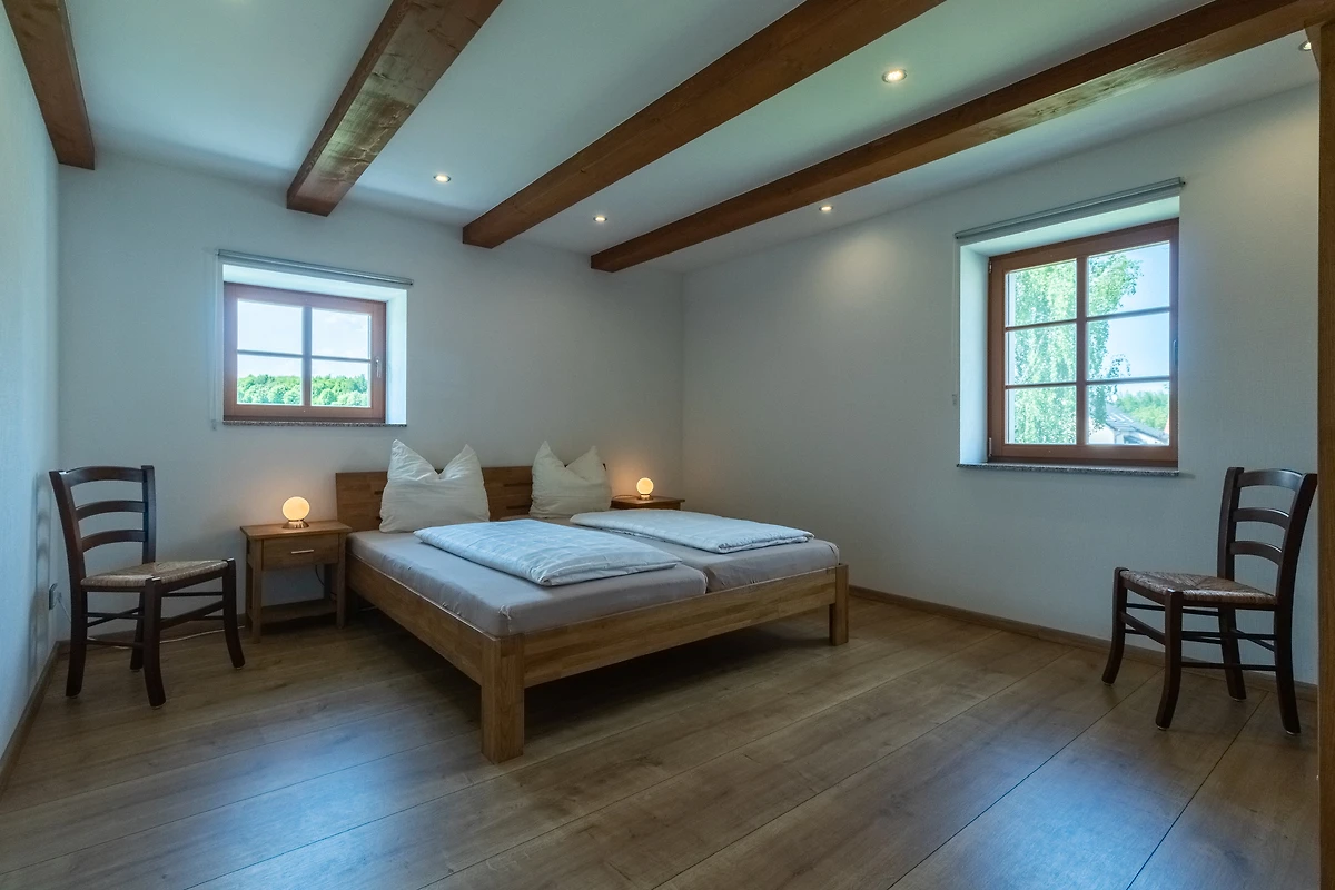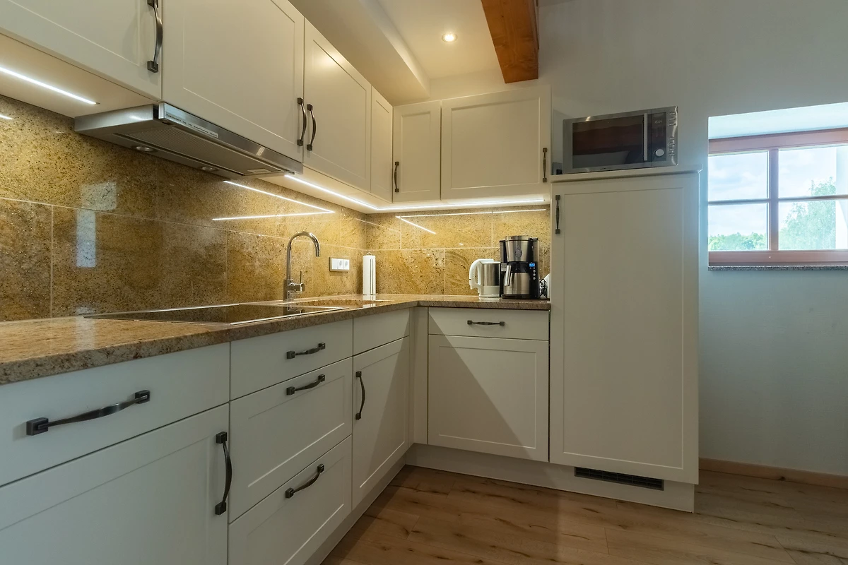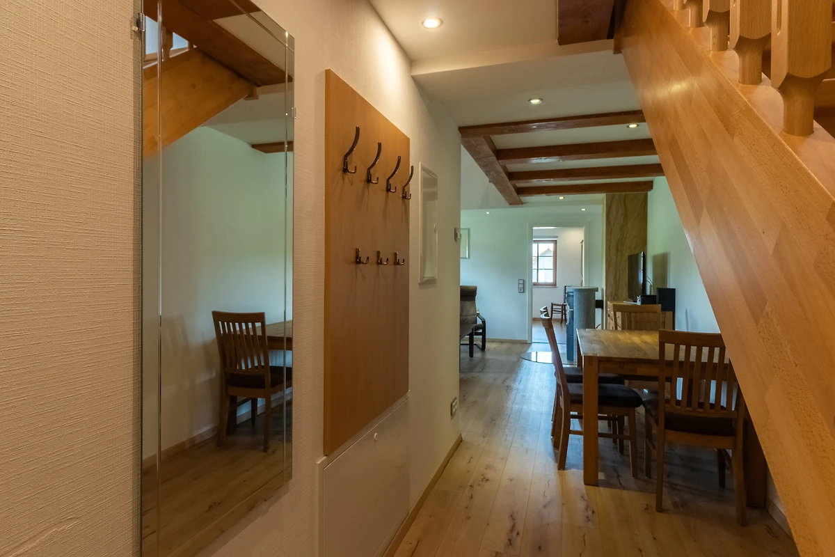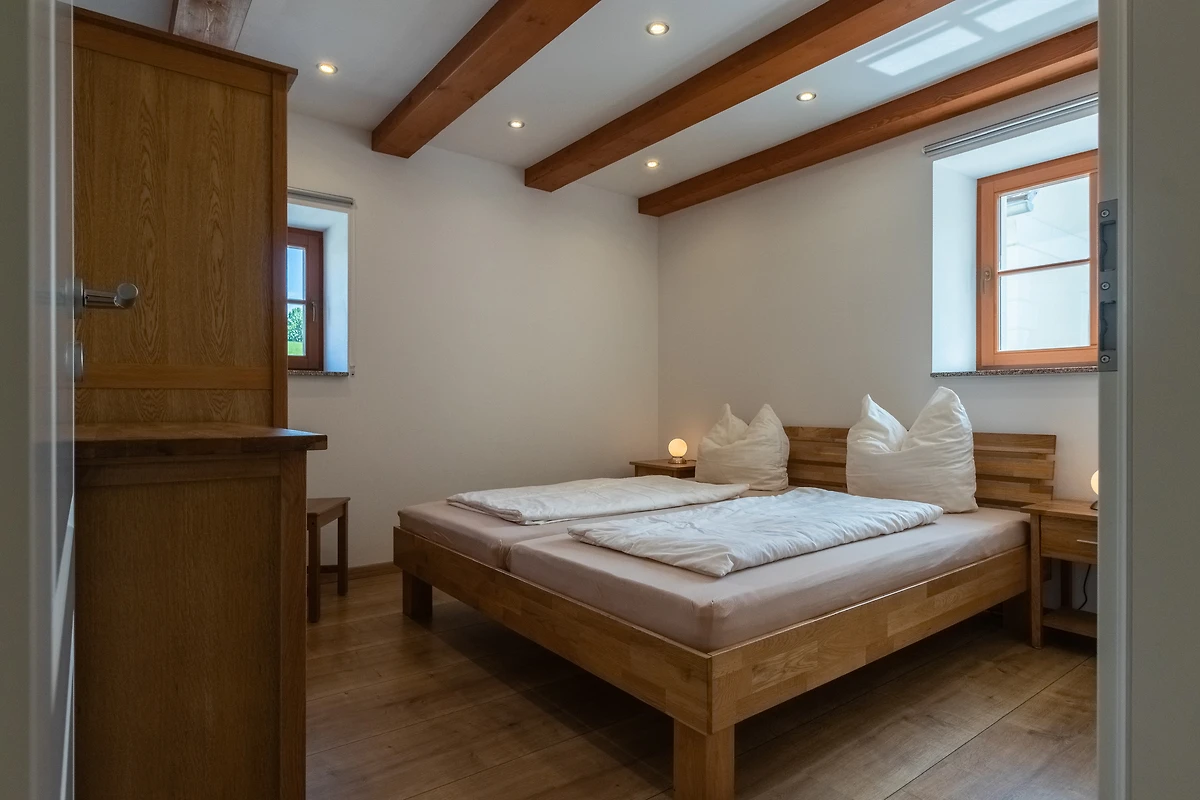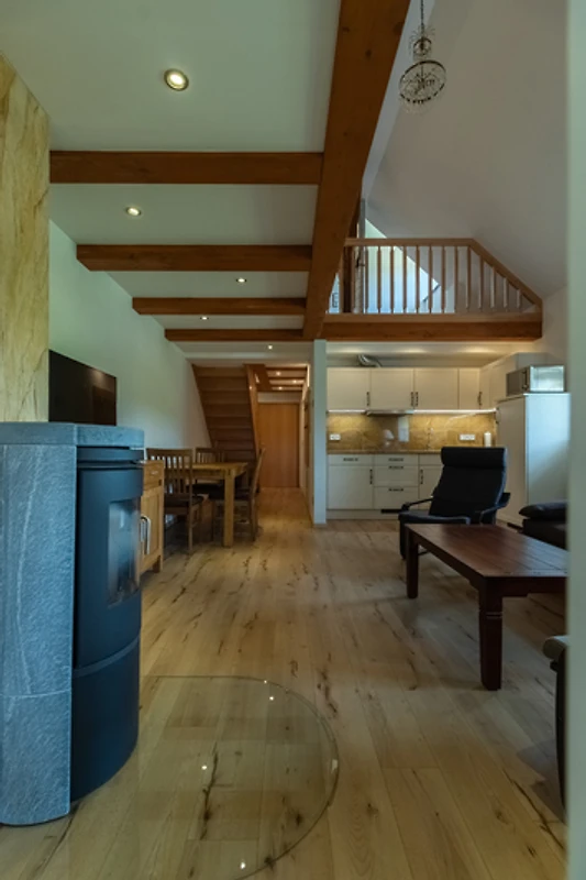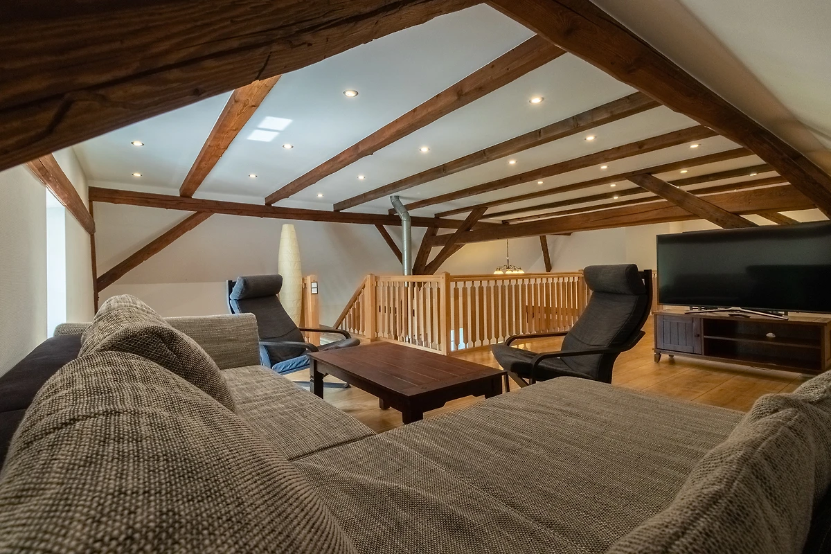 Achter de ruwbouw van een als koetshuis en opslagplaats gebruikte schuur, die naar historisch voorbeeld werd gerenoveerd, werden 3 afzonderlijke vakantiewoningen in maisonnettestijl ontworpen als nieuwe inrichting. Ze beginnen elk op de eerste verdieping en reiken tot in het dakgedeelte, waar de oorspronkelijke balken zichtbaar zijn gelaten. Er is keuze uit twee verschillend ontworpen flat types