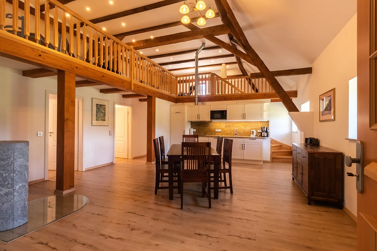 Vakantie met 4 volwassenen aan de Olbersdorfer See. We verbleven in appartement nr. 2 op de eerste verdieping - uitzicht op de binnenplaats. De locatie kan niet beter zijn, momenteel een doodlopende weg vanwege een bouwterrein, maar ook verder weinig verkeer omdat verderop een ontlastingsweg loopt. Met veel moeite werd hier een driezijdige boerderij gerestaureerd. Twee gebouwen zijn klaar, één moet nog komen. Bij de hoofdingang van de verbouwde oude schuur kunt u gemakkelijk uw fietsen stallen, de trap naar de bovenverdieping is breed. De flat is ideaal ingedeeld en laat u de dakbalken over 2 verdiepingen ervaren. 2 badkamers / WC en douche bad zijn groot en beide hebben ramen. Er zijn overal horren, wat logisch is in de zomer - dus open ramen geen probleem. Ondanks de hete buitentemperatuur was het aangenaam in de flat. Keuken heeft alles wat nodig is, TV en geluidsinstallatie ook aan boord. Grote houten vloer en dus 1a leefklimaat. Het appartement is een ideaal uitgangspunt voor wandelingen en mountainbiketochten in het Zittauer gebergte. De ZOJE kabelbaan passeert in het zicht van het huis. De halte naar Zittau of Oybin / Jonsdorf ligt op 7 minuten lopen. Achter het huis beginnen fietspaden in alle richtingen. Tuin kan gebruikt worden, groot gebied. Zittau is bereikbaar per fiets, bus, trein of te voet. Het hoogtepunt blijft de zonsopgang aan de O-See of met de MTB vroeg in de ochtend op de Töpfer - met een onbeschrijfelijk uitzicht op de O-See, Zittau en het hele Lausitzbekken