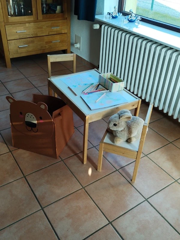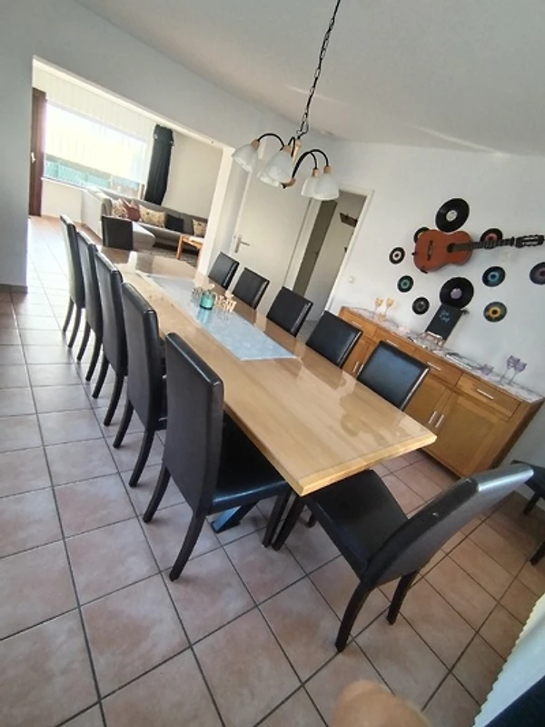 Het huis is ideaal voor grotere gezinnen of vriendengroepen. De voorzieningen voor gezamenlijke maaltijden, samenzijn en het dagelijks leven zijn perfect. Er ontbrak niets. De keuken is zeer goed uitgerust. In de keuken en de woonkamer staat elk een grote eettafel waar we allemaal (7 volwassenen en 6 kinderen) plaats konden vinden. We konden dus vrij kiezen of we allemaal samen in de keuken of in de woonkamer wilden eten. Er is een open haard met bijna onbeperkte voorraad brandhout, een enorme bankstel dat zich rond de open haard nestelt, een grote flatscreen-tv, enkele bordspellen en een kleine speeltuin achter het huis. Na overleg kregen we voldoende kinderbedjes en kinderstoelen voor de grote hoeveelheid kleintjes. Gewoon geweldig! De ontbrekende ster in de uitrusting wordt vanuit ons "familieperspectief" alleen toegeschreven aan het ontbreken van kinderbeveiligingen op trappen en stopcontacten dicht bij de vloer, en aan het ontbreken van luxueuze voorzieningen zoals een sauna of iets dergelijks. Dus niets ernstigs. Het zou eerder 4,5 sterren moeten zijn.