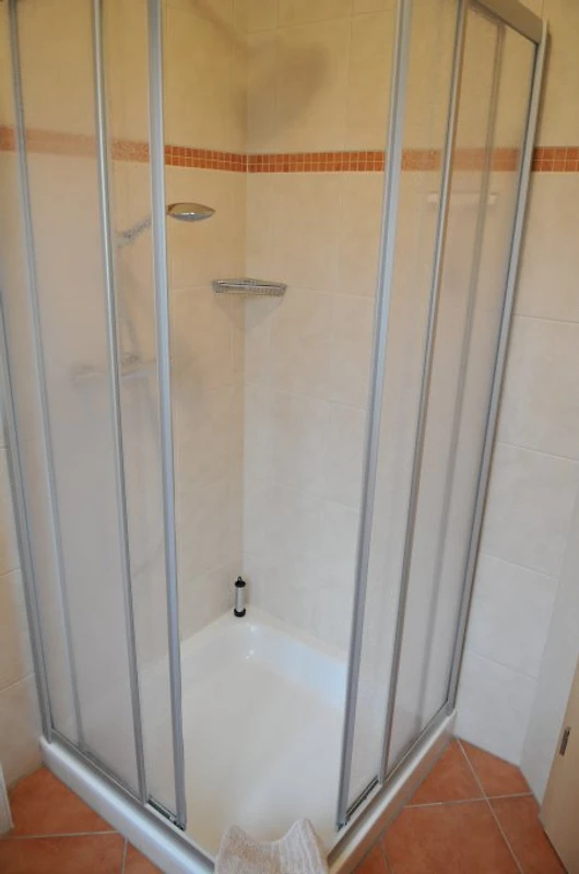 In de badkamer met raam, douche, WC, wastafel, spiegelkast en vloerverwarming liggen uw handdoeken al voor u klaar.
