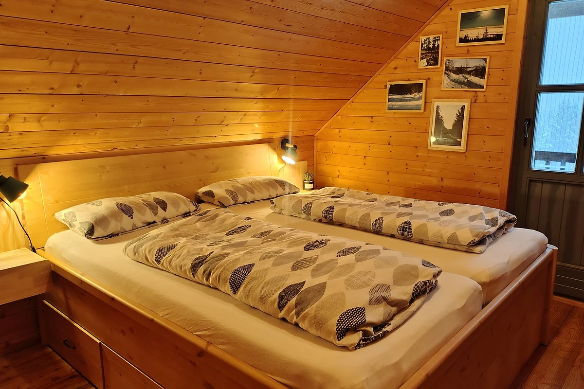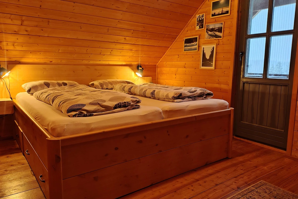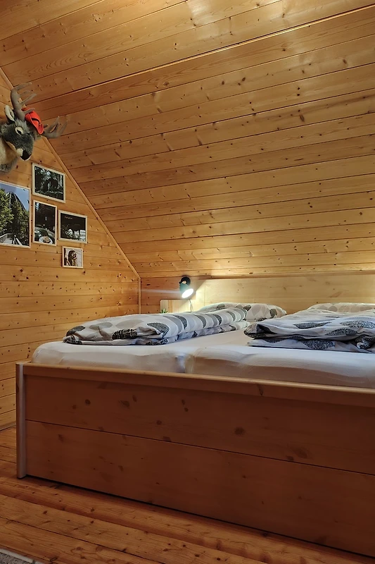 Rustiek maar zeer gezellig vakantiehuis in perfecte ligging. Kleine omheinde tuin (enige minpunt: kleine honden konden op sommige plekken door het hek, maar daarvoor waren er buiten looplijnen aangebracht). De keuken bevatte alles wat je nodig hebt (kruiden, vuilniszakken, bakpapier, koffie . . . . . ). De stoomdouche en de pelletkachel hebben we niet gebruikt. Het was daarvoor te warm. We hebben bijna elke avond herten en zelfs 1x een lynx op het grasveld vanaf het balkon kunnen zien. Ze waren slechts ongeveer 150 - 200 m verwijderd (hier is een goede verrekijker voor de reisbagage aan te raden). Men kan vanuit het huis veel, zeer goed bewegwijzerde (rond)-wandelpaden gebruiken. Wie ontspanning en rust zoekt, is hier aan het juiste adres!