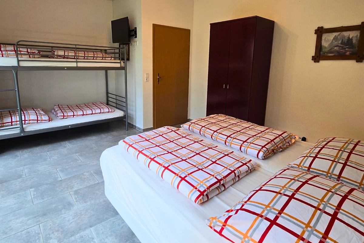 ATTENTIE!!!!!! Verdere aanbiedingen voor singles, koppels, gezinnen en groepen van 2 tot 120 personen!!!!! Omdat wij u hier en in de omgeving, die rijk is aan bos en water, veel verschillende vakantiehuizen kunnen aanbieden, kunt u ook onze andere aanbiedingen bekijken: Dabel OT Holzendorf:_1x appartement met 1 slaapkamer, overdekt balkon, voor maximaal 4 personen _ 5x appartement met elk 2 slaapkamers, overdekt balkon, voor maximaal 6 personen _3x appartement met elk 2 slaapkamers, overdekt terras, voor maximaal 7 personen _2x rolstoeltoegankelijk appartement met elk 2 slaapkamers (bed met elektrische bediening), toegankelijke douche, overdekt terras, voor maximaal 5 personen_4x stacaravan aan het meer met elk 2 slaapkamers, badkamer, woonkamer en terras _1x stacaravan aan het meer met 3 slaapkamers, Badkamer, WC, woonkamer en terras _3x vakantiehuis (elk 150 m²) met elk 4 slaapkamers, serre, voor maximaal 12, 13 en 15 personen _1x vakantiehuis "Bungalow aan het meer" met 5 slaapkamers, serre, overdekt terras, tuin, voor maximaal 12 personen _2x vakantiehuis (elk 200 m²) met elk 6 slaapkamers, serre, terras, voor maximaal 16 en 18 personen__5 extra groepsruimten voor 20, 2x 30, 50 en 80 personen ___ Kukuk: _vakantiehuis met 5 slaapkamers, serre, terras en tuin, voor maximaal 14 personen _groepshuis "Hostel zum Kukuk" voor maximaal 60 personen met 19 slaapkamers, 2 groepsruimtes, terras en tuin ___ Borkow: groepshuis "Haus am Walde" met 29 slaapkamers, 6 groepsruimtes, hal, terras en tuin, voor maximaal 120 personen ___________Wie komt er naar het Sternberger Seenland - Schweriner-Seenplatte ? Groepen, verenigingen, families, clubs, parochies, klassen, vissers, jagers, natuurliefhebbers, sporters, reisgroepen __ Voor welke gelegenheid ? Vieringen, familiefeesten, huwelijksfeesten, familiereünies en uitstapjes, klassenreünies, klassenreizen, groepsreizen, excursies, busreizen, stads- en meertochten, busreizen, vergaderingen, conferenties, begeleide wandelingen van alle Wanneer ? Pasen, Hemelvaartsdag, Pinksteren, Oud en Nieuw, lente, zomer, herfst en winter __ Wat te doen in het merengebied ? Wandelen, paardrijden, zwemmen, vissen, fietsen en varen, zeilen, minigolf, feesten, natuur, dieren en vogels kijken, dansen, fotografie, bowlen, trolley & kanoën __ Wij organiseren voor u: Excursies, wandelingen, feesten, dansavonden, barbecue-avonden, buffetten, kampvuren met stokdeeg, trolleytochten, toernooien in voetbal en volleybal, badminton, tafeltennis, biljart, vissen, boccia, voetbaltennis, tafelvoetbal, kegelen, bowling, minigolf, kanotochten, koets- en paardenritten, prijsschaatsen, boogschieten.
