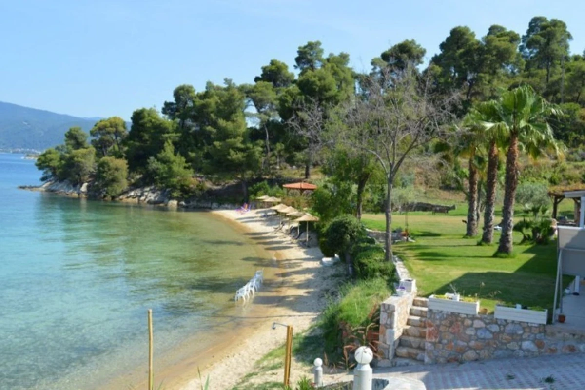Het topappartement Villa Paradiso aan de blauwe lagune ligt uniek, direct met eigen zandstrand, op een van de mooiste plekken van Chalkidiki.