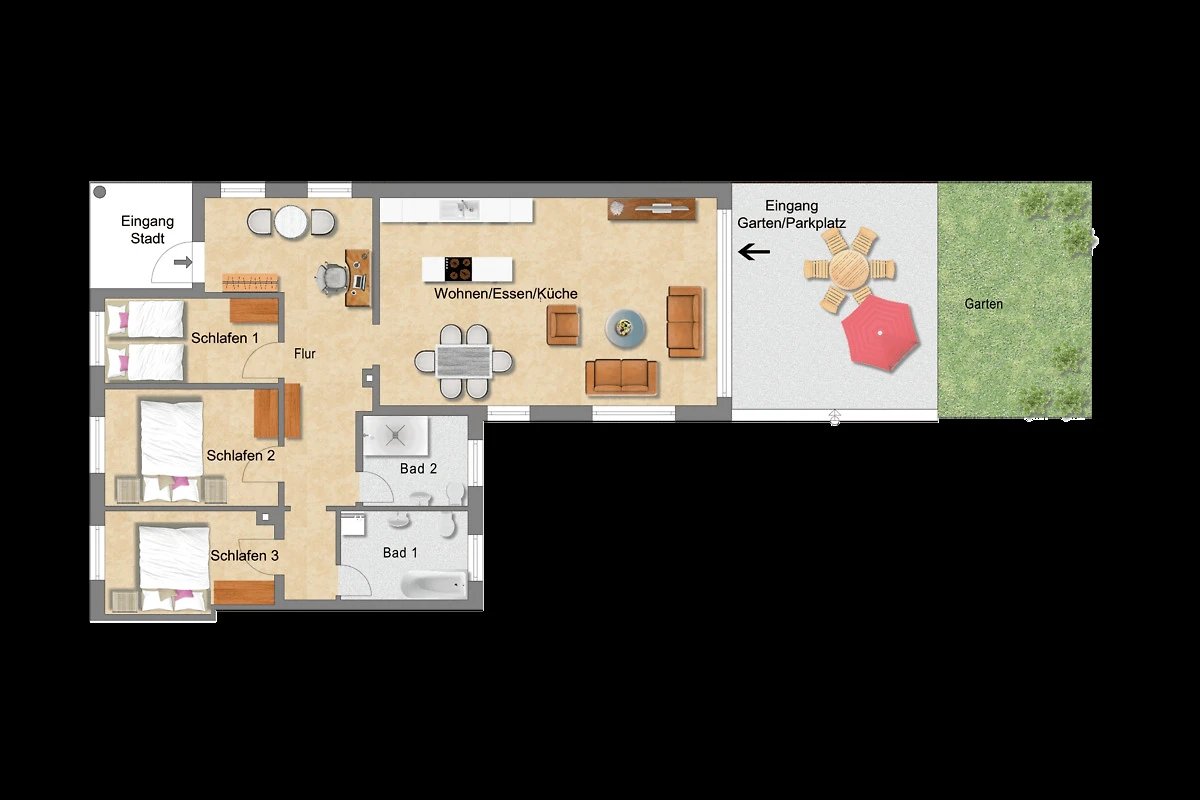 Het vakantiehuis ligt in het mooie kloosterstadje Walkenried. Restaurants, banken, artsen, winkels zijn beschikbaar in het dorp en kunnen te voet worden bereikt.