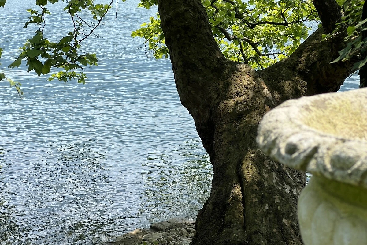 Het hoogtepunt is de directe toegang tot het meer van Lugano. Een mooie, oude boom zorgt voor schaduw direct aan de oever en maakt deze watertoegang bijzonder (= oase).
