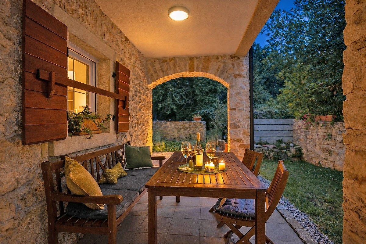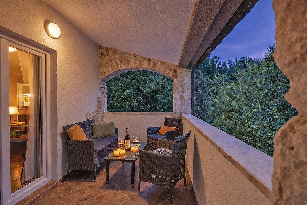 - Groot balkon met uitzicht op het groen, perfect voor een ontbijt in de buitenlucht of ontspannen avonden. Het vakantiehuis EMILY combineert de charme van een origineel Istrisch stenen huis met modern comfort en is met veel aandacht voor detail gerestaureerd. Het is de perfecte plek voor gezinnen, koppels of vrienden die samen willen ontspannen en de schoonheid van Kroatië willen genieten.