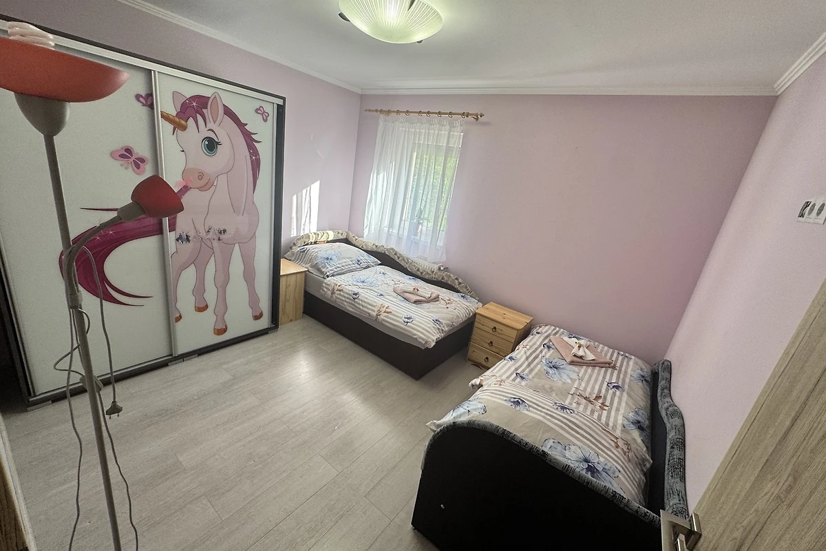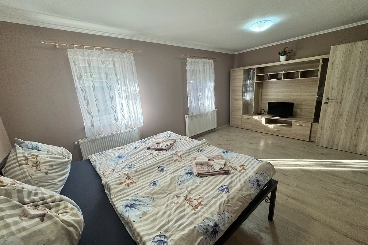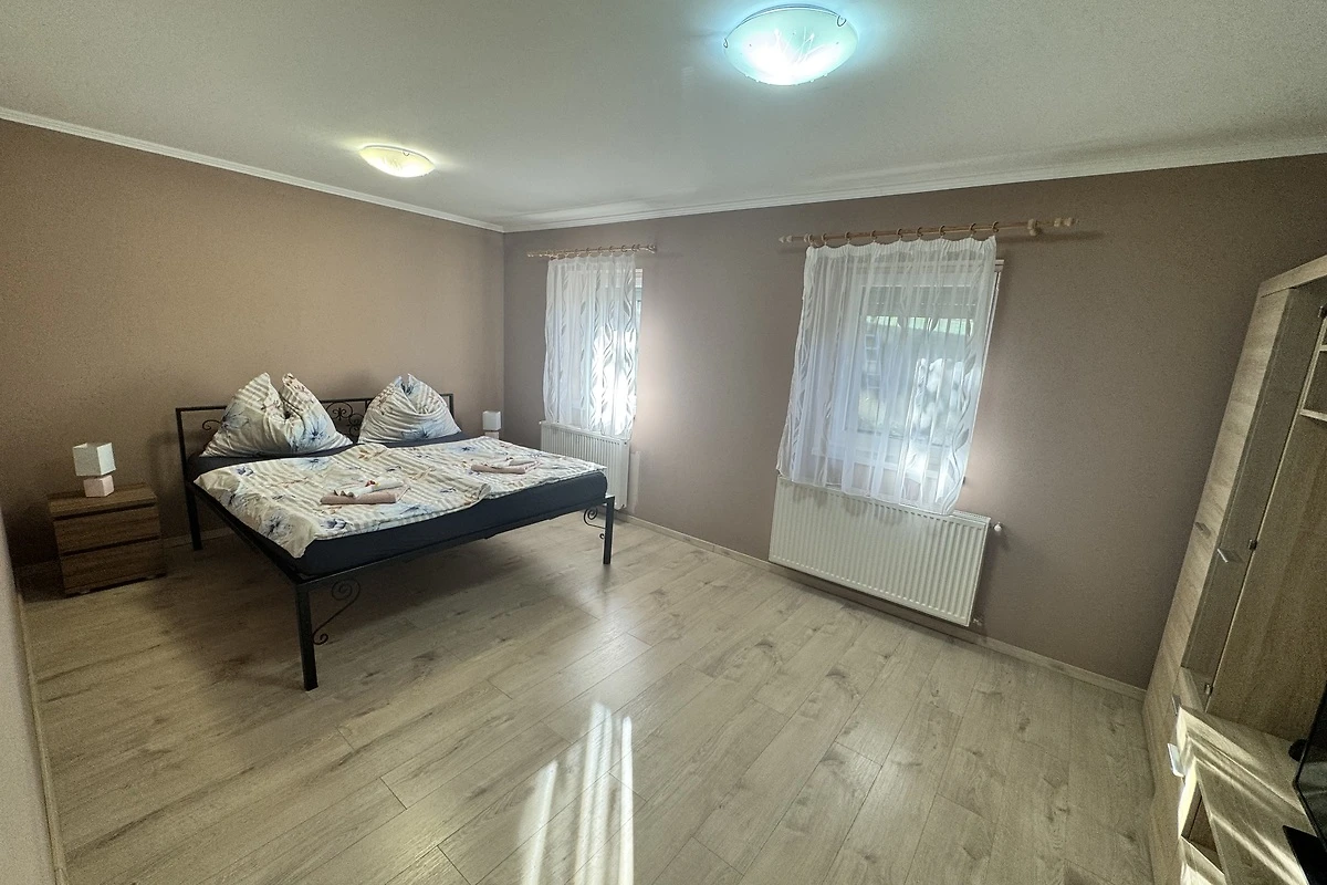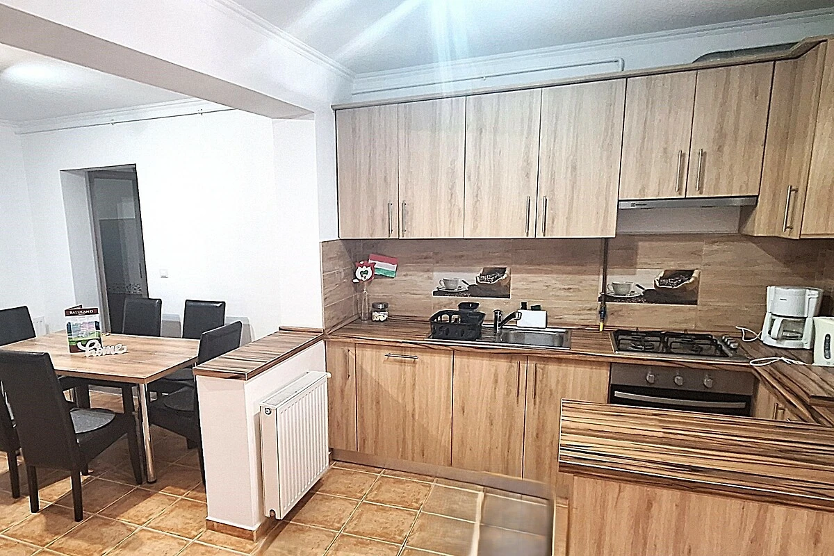 Het huis is modern ingericht en er ontbrak niets, behalve dat onze slaapoptie zo hard was. Zelfs als het als slaapbank werd beschreven, is dat ding echt niet goed, ik kon zo slecht slapen vanwege rugpijn, je bent blij als het half zes is. Pas dit alsjeblieft aan. Wees je ervan bewust dat je op het platteland bent; iedereen heeft een hond en als er een blaft, blaft het hele dorp. Oh ja, grasmaaiers zijn er in overvloed en worden veel gebruikt. Ik zou eigenlijk teruggaan als het niet voor de kwestie met de huissleutel was, die je in Fonyód moet ophalen, 100 km heen en terug. Daar moet je echt kalm blijven, want de eigenaar woont ernaast. Ik heb het doorgeslikt na 10 uur rijden. Eigenlijk moet worden vermeld dat het huis dan al afgevallen was bij mij. Dus als jullie met z'n tweeën zijn, is het prima en klaar om een sleutel op te halen en terug te brengen. Twee keer naar Fonyód rijden is voor mij niet meer acceptabel. Er is geen supermarkt in het pension, ik heb alleen lokale mensen gezien. Nou, ik wens je hier veel plezier.
