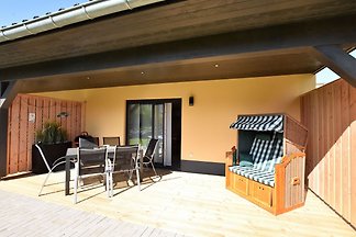 Modern vakantiehuis (ca. 80m²) met 2 slaapkamers, terras op het zuiden met glazen dak in Zierow op ca. 600m van de Oostzee bij Wismar. Huis met ventilatiesysteem, omheind terrein