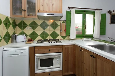 Parterre: (hal, woonkamer(TV(satelliet), open haard, DVD-speler, tuindeuren), keuken(oven, magnetron, afwasmachine, vriezer, wasmachine), slaapkamer(2-pers. bed)