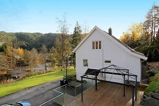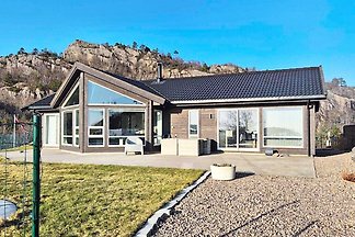 Modern en charmant houten huis met adembenemend uitzicht op fjorden, de Noord-Atlantische Oceaan en schereneilanden. Idyllisch en rustig gelegen op 100 m hoogte aan de zuidkust.