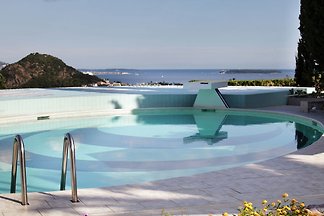 Goed onderhouden, rustig, eigen huisje met tuin, zwembad en uitzicht op zee aan de Côte d'Azur.