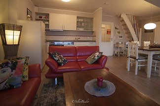 Rustig gelegen, hoogwaardige en gezellig ingerichte comfortflat onder riet bij het strand voor 2-4 personen, sauna in het complex.