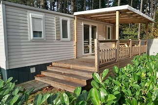 Parterre: (woonkamer(TV(kabel)), open keuken(combimagnetron, koel-/vriescombinatie), slaapkamer(2-pers. bed), slaapkamer(stapelbed), badkamer(douche, wastafel, toilet), tuindeuren)