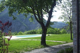 Schuilplaats van de Vader in Noord-Toscane met omheinde tuin, zwembad en adembenemend uitzicht.