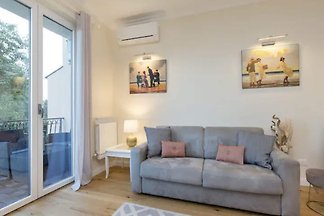 Modern appartement met een betoverend uitzicht op het meer en een ruime terras, een privé omheinde tuin en een garage, 4 slaapplaatsen, airconditioning, hondvriendelijk.