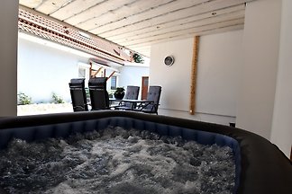 Nieuwbouw vakantiewoning met open haard, 2 badkamers - stijlvol ingericht, met plaats voor 6 personen op 2 verdiepingen. Terras met uitzicht op het zuiden en barbecue, eigen parkeerplaats