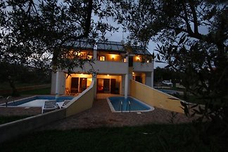 2 appartementen (4 + 1) i (4 + 1), veliko Dvoriste i privatni parkeren. Centar mjesta 800m, meer 1000 m, 1500 m Plaza.
