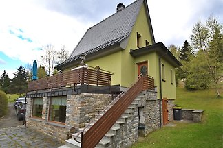 5-sterren bergchalet aan de rand van het bos op 750 m hoogte in Klingenthal/Vogtland op een heerlijke zonnige locatie, direct aan een langlaufloipe met een infrarood wellnessruimte.