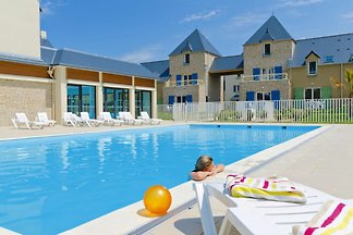 Kitchenette(kookplaat(keramisch), waterkoker, broodrooster, koffiezetapparaat, magnetron, afwasmachine, koelkast), woon/eetkamer(2-pers. slaapbank, TV(tegen betaling))