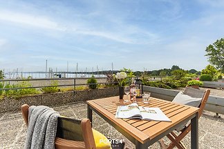 45 m² kleine maar zeer fijne flat met tuin, bekroond met 4 sterren, direct aan de Schlei, , bootligplaats te huur.