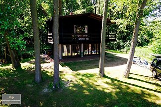 Houten huis aan het Schwieloch meer